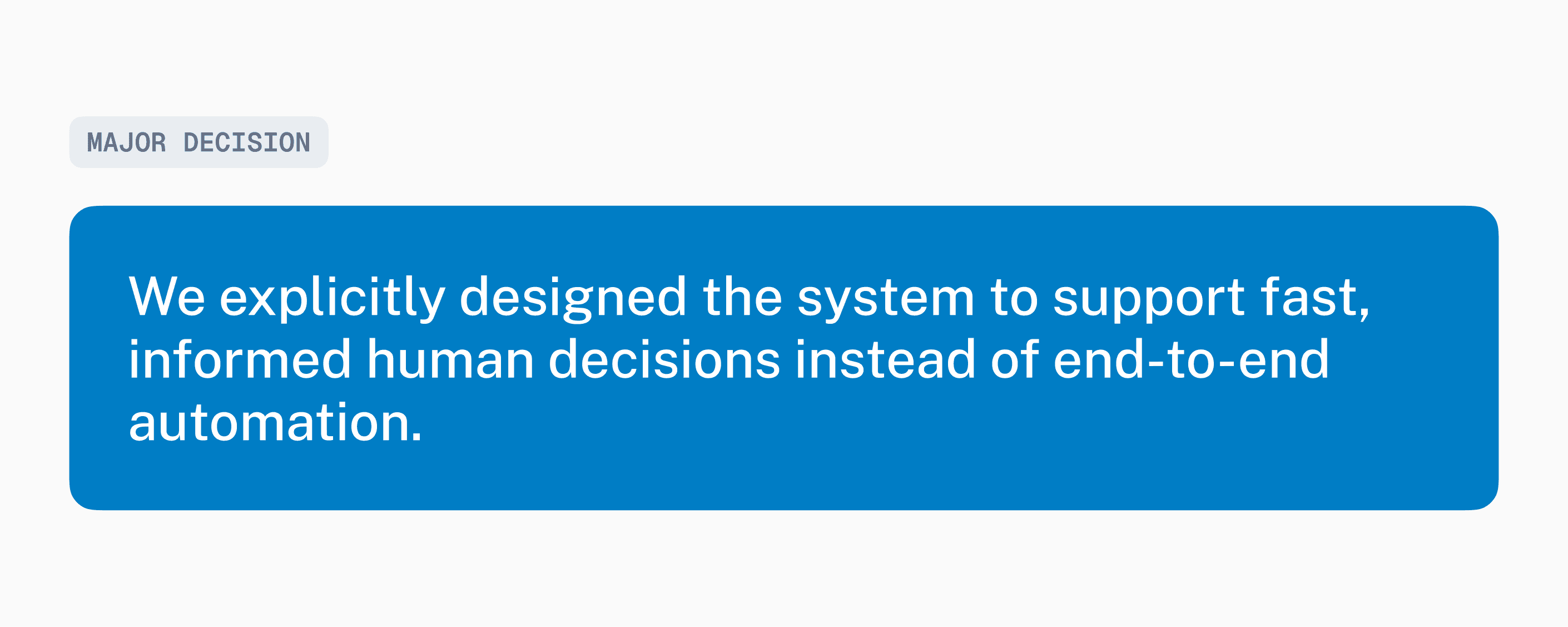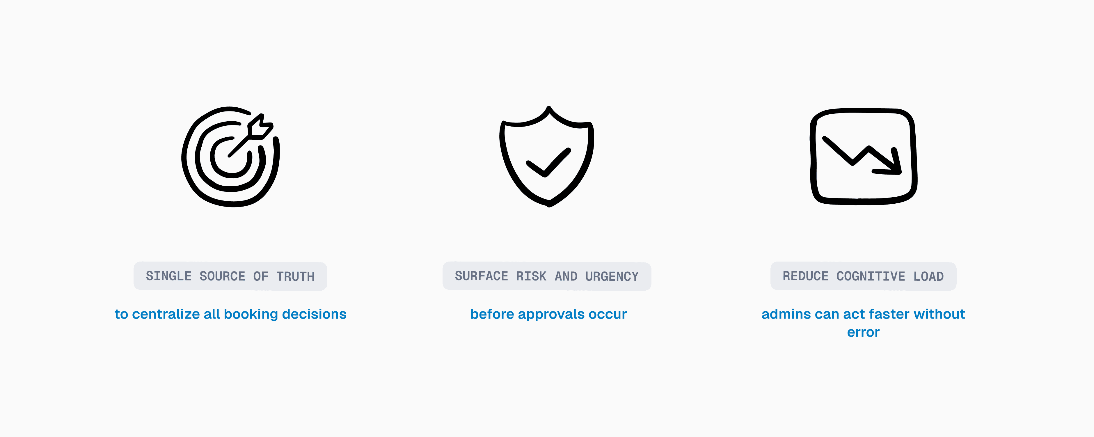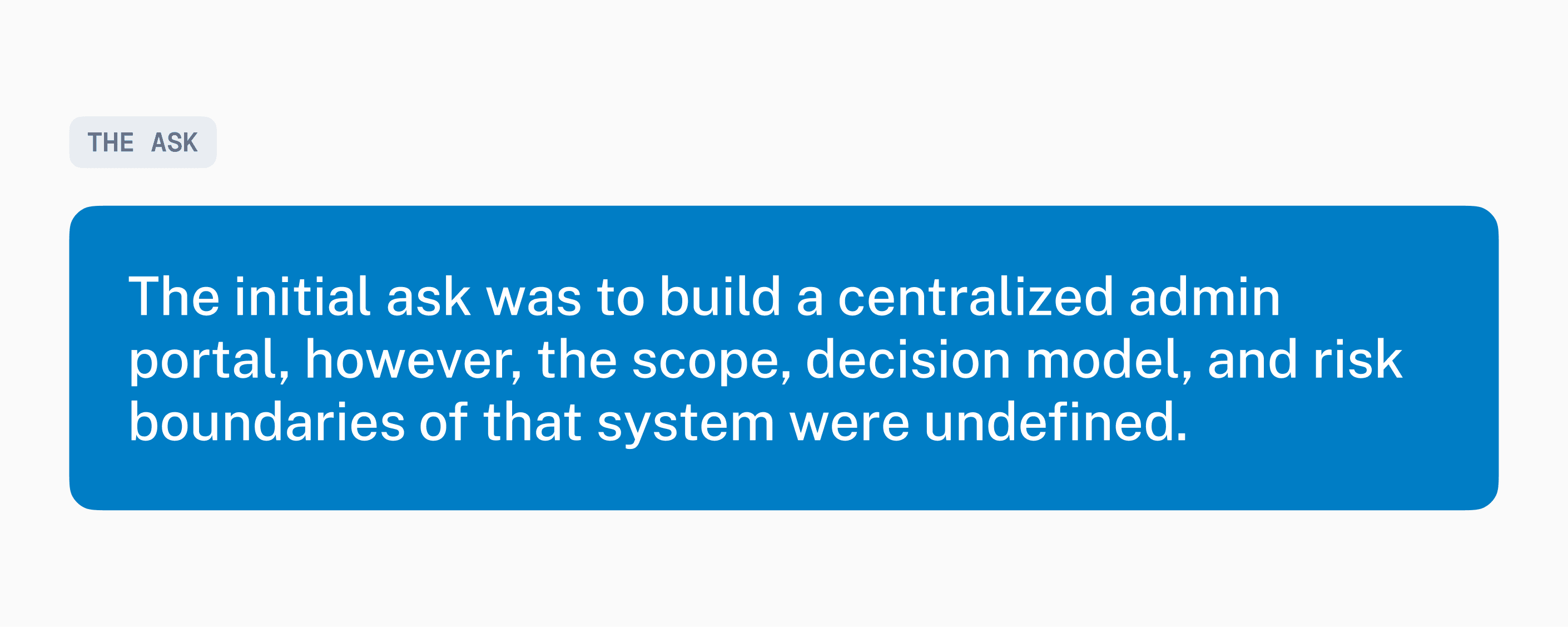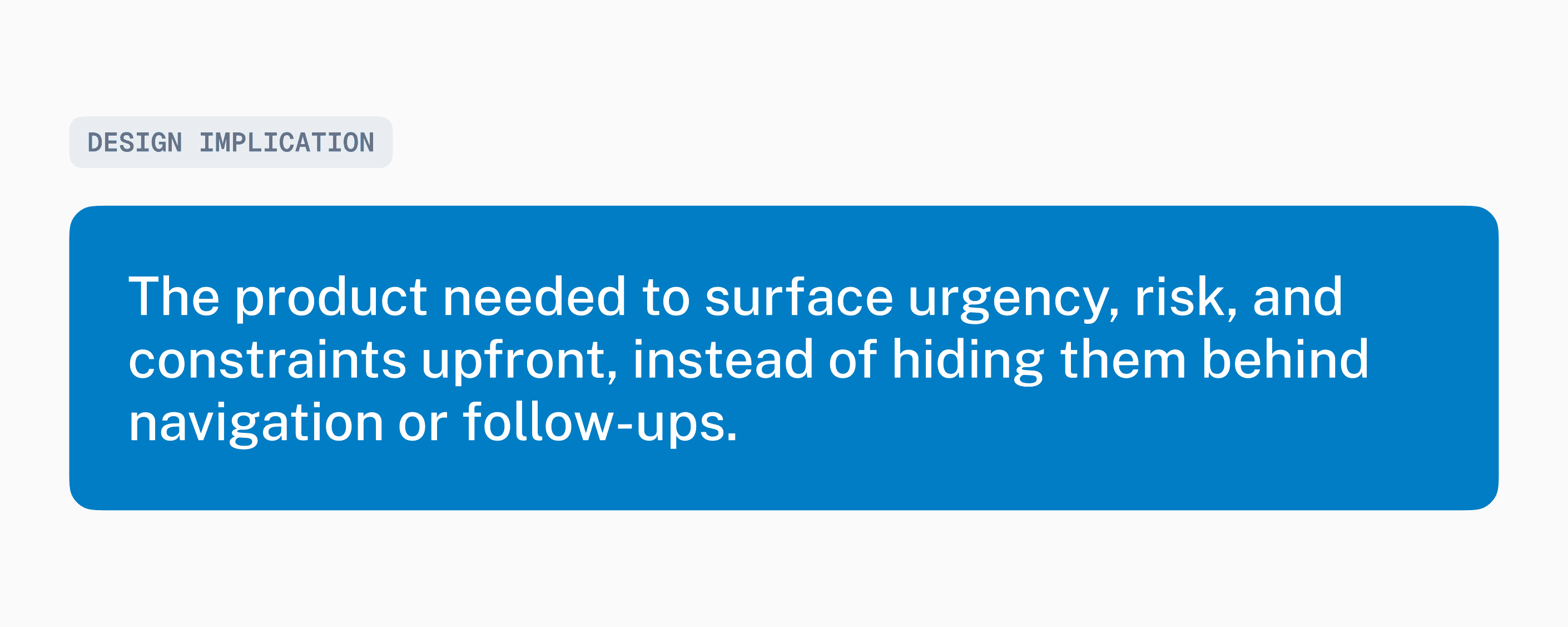 Because of the risks, the solution could not optimize for flexibility or automation first. It had to prioritize clarity, guardrails, and decision confidence.