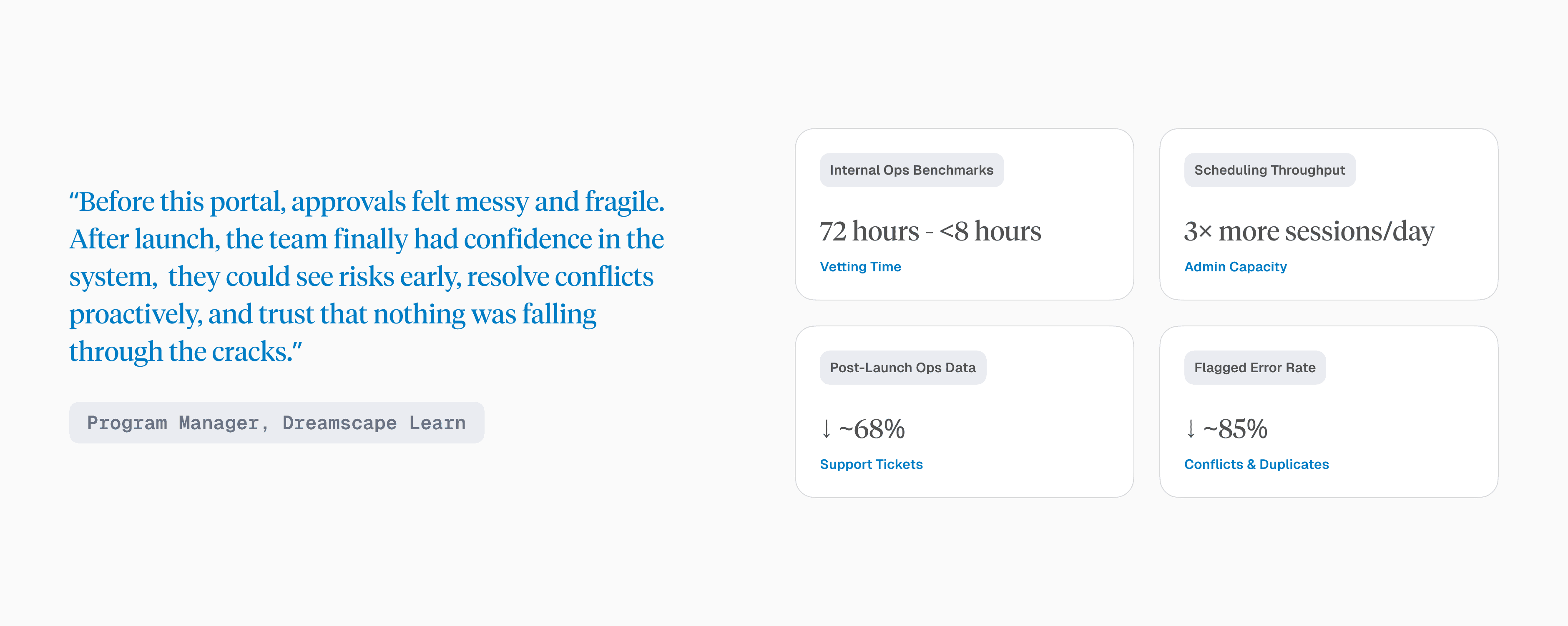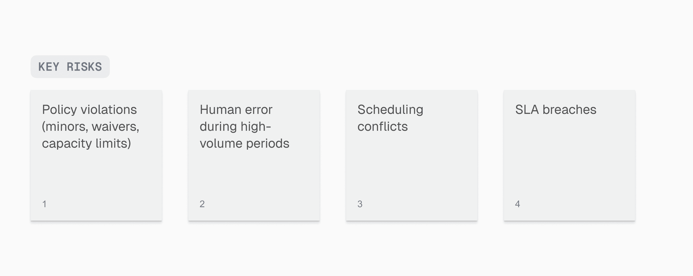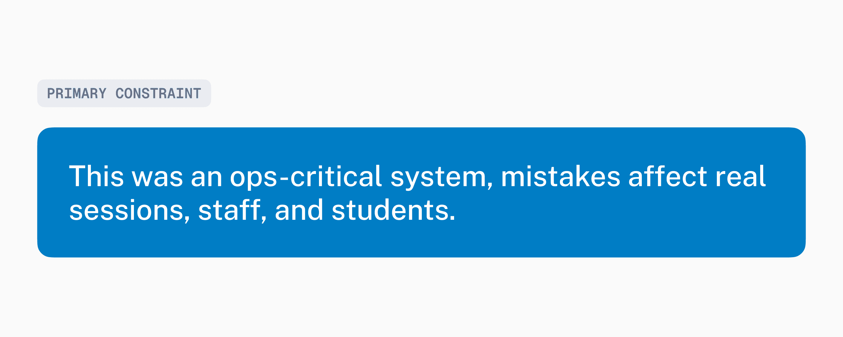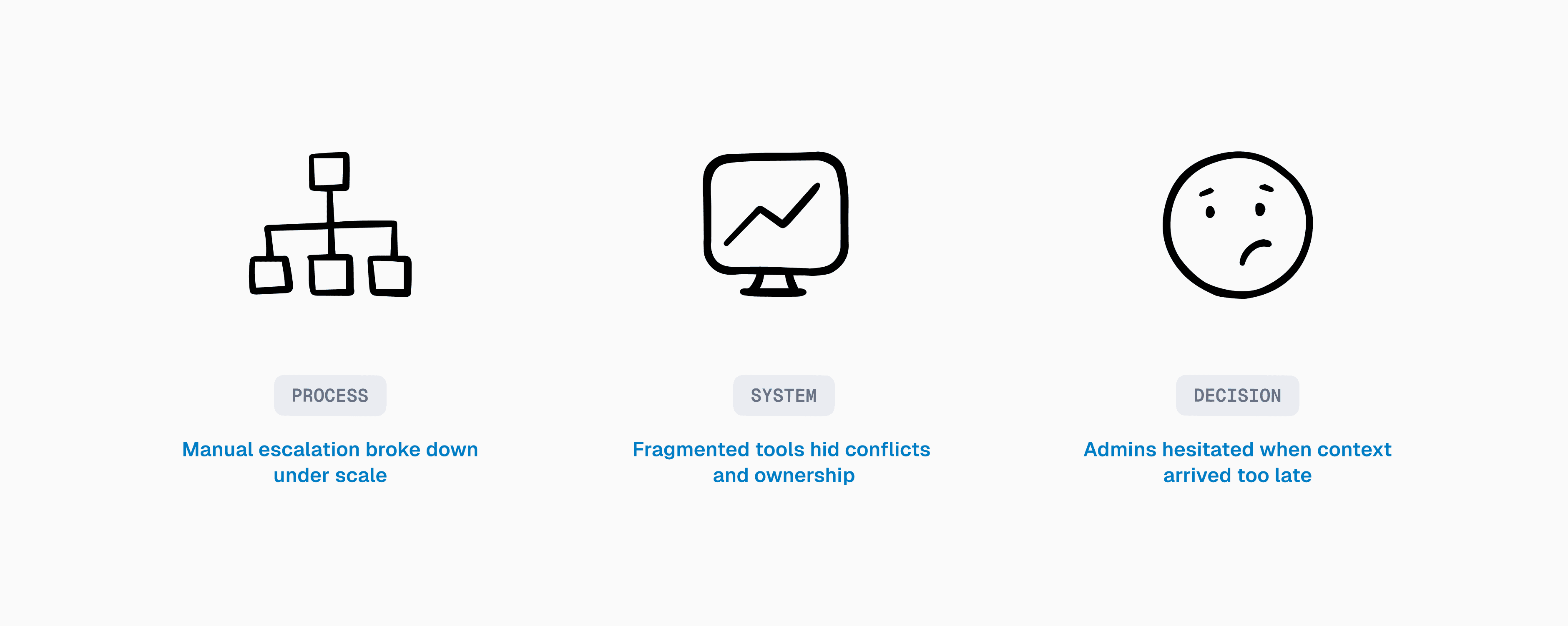 Because of the risks, the solution could not optimize for flexibility or automation first. It had to prioritize clarity, guardrails, and decision confidence.