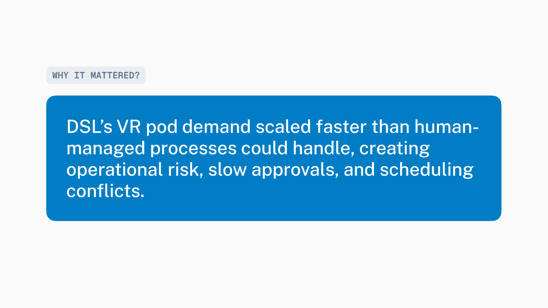 As demand increased across multiple campuses and pods, manual coordination could not keep up with request volume, leading to delays, conflicts, and reactive escalation.