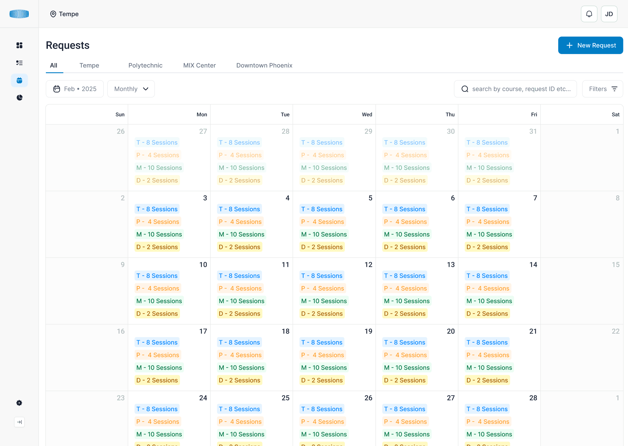 Enterprise internal B2B admin portal for Dreamscape Learn (DSL), built to manage VR session requests, vetting, scheduling, and escalation across multiple ASU campuses.