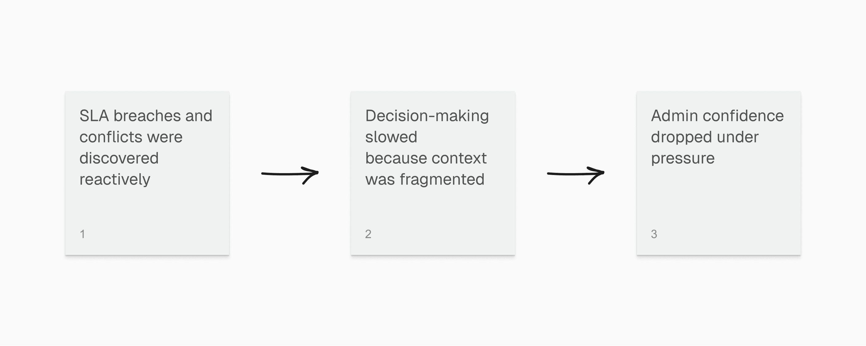 Rather than optimizing for automation or individual role efficiency, the portal’s core responsibility is to support fast, confident human decisions under operational pressure.