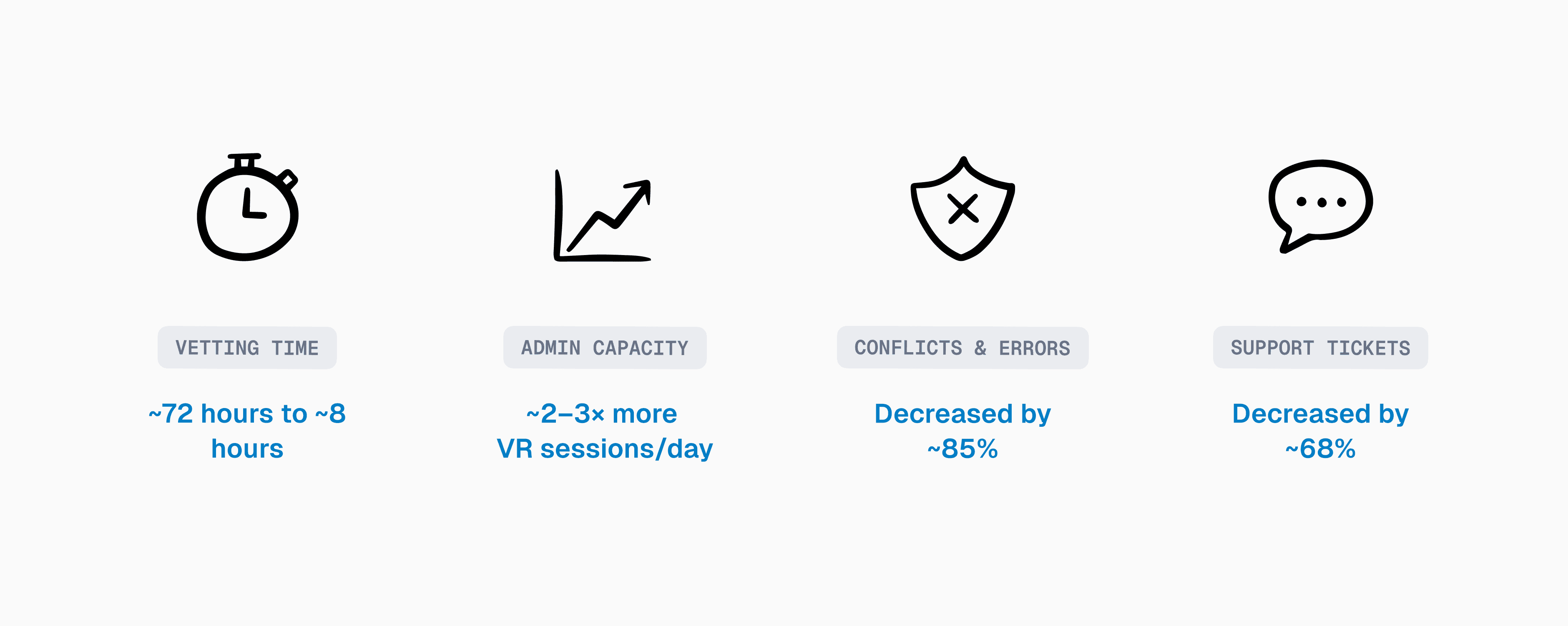 Faster vetting was driven by reduced back-and-forth between admins, as required context and validation moved into a single review surface.