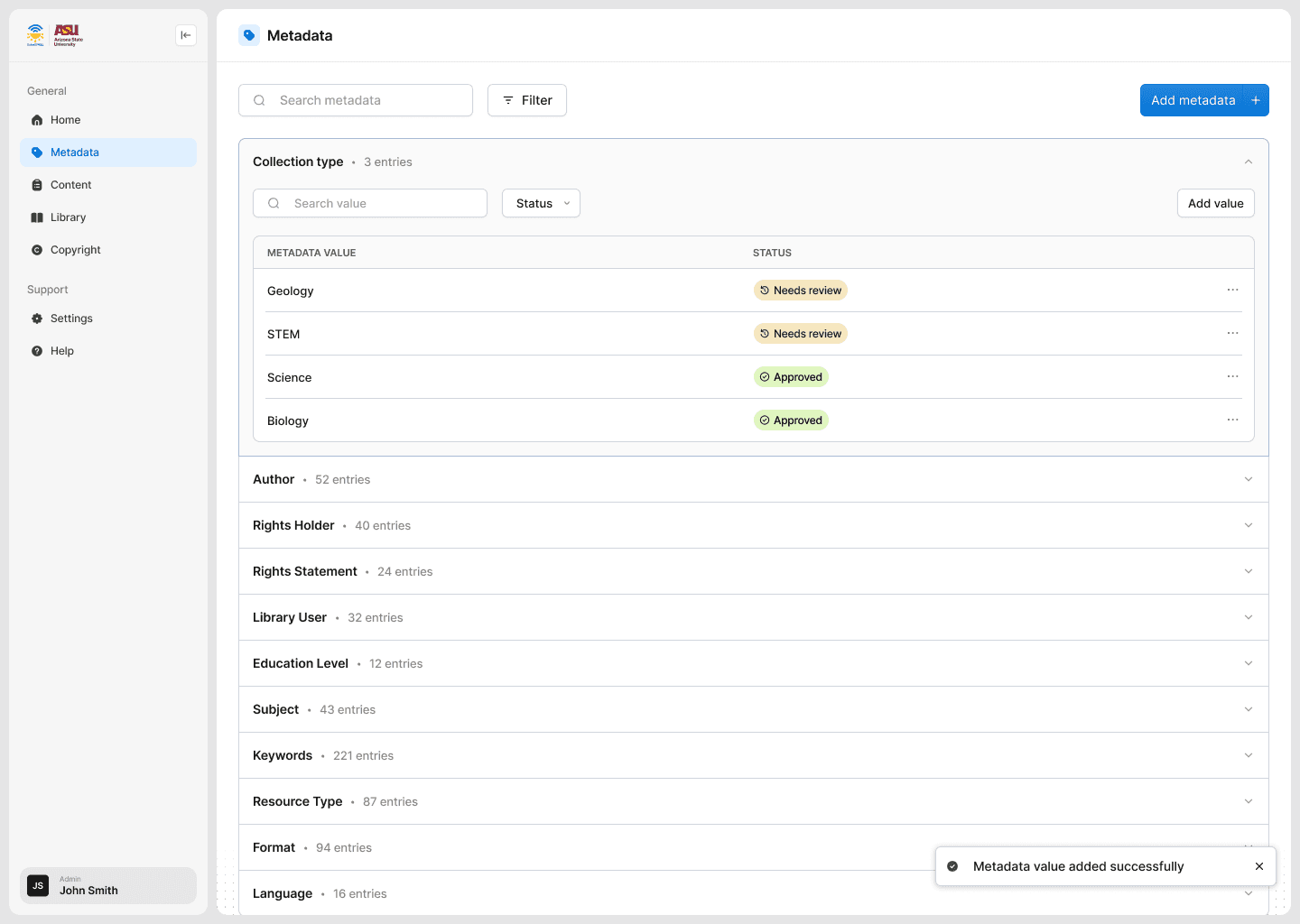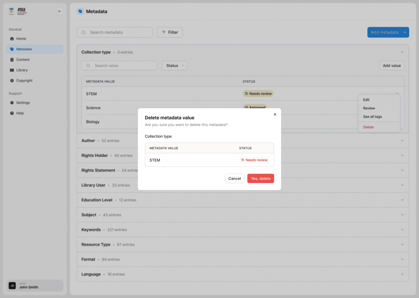 AI supported curators at the individual metadata field level, offering contextual suggestions on demand.