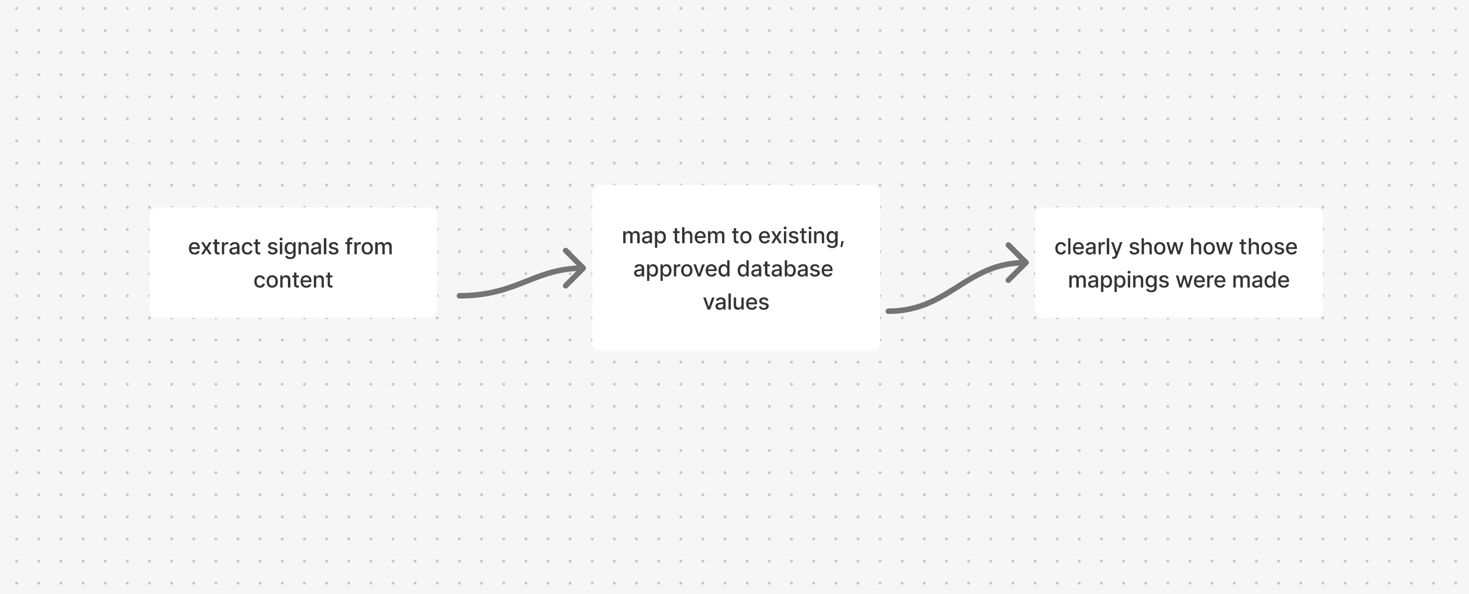 Result: We designed AI to assist, not decide. Suggestions were surfaced with confidence signals and required explicit human approval, enabling ~3× faster ingestion without sacrificing accuracy or accountability.